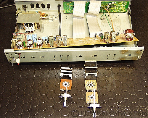 Spannender Vorverstärker der zum HMA-6500 Verstärker gehört. Er ist bis auf die Phono-Eingangsplatte sehr einfach und nach Lehrbuch aufgebaut und bis auf die Schalter und Regler problemlos. Anders sieht es leider bei der Phono-Eingangsstufe aus, die gerne mit der Zeit so gar nicht mehr machen will was sie tun soll. Ist aber alles zZ noch reparabel.
